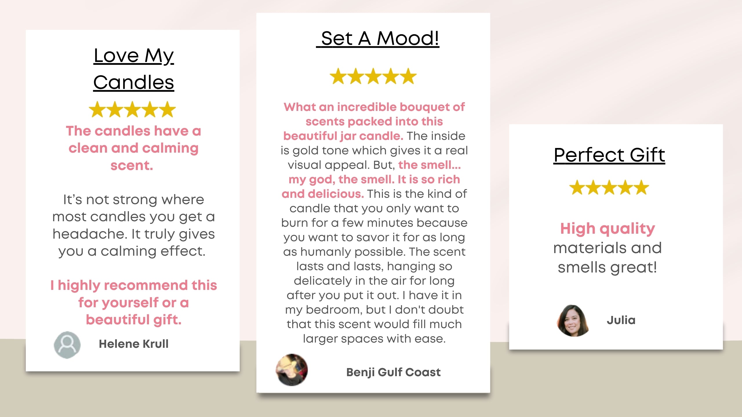Formulated in the heart of Florida, each candle is carefully hand-poured by our expert artisans using only natural ingredients. We pride ourselves on using 100% soy wax, pure essential oils, and cotton wicks. By avoiding synthetic fragrance oils, our candles offer genuine natural properties and therapeutic experiences.