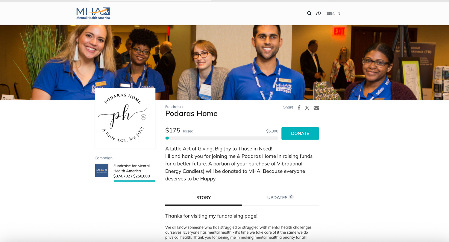 Thank you for supporting Podaras Home and MHA. A portion of the profits from your purchase will go to support MHA with their many initiatives to improve mental health for all Americans.