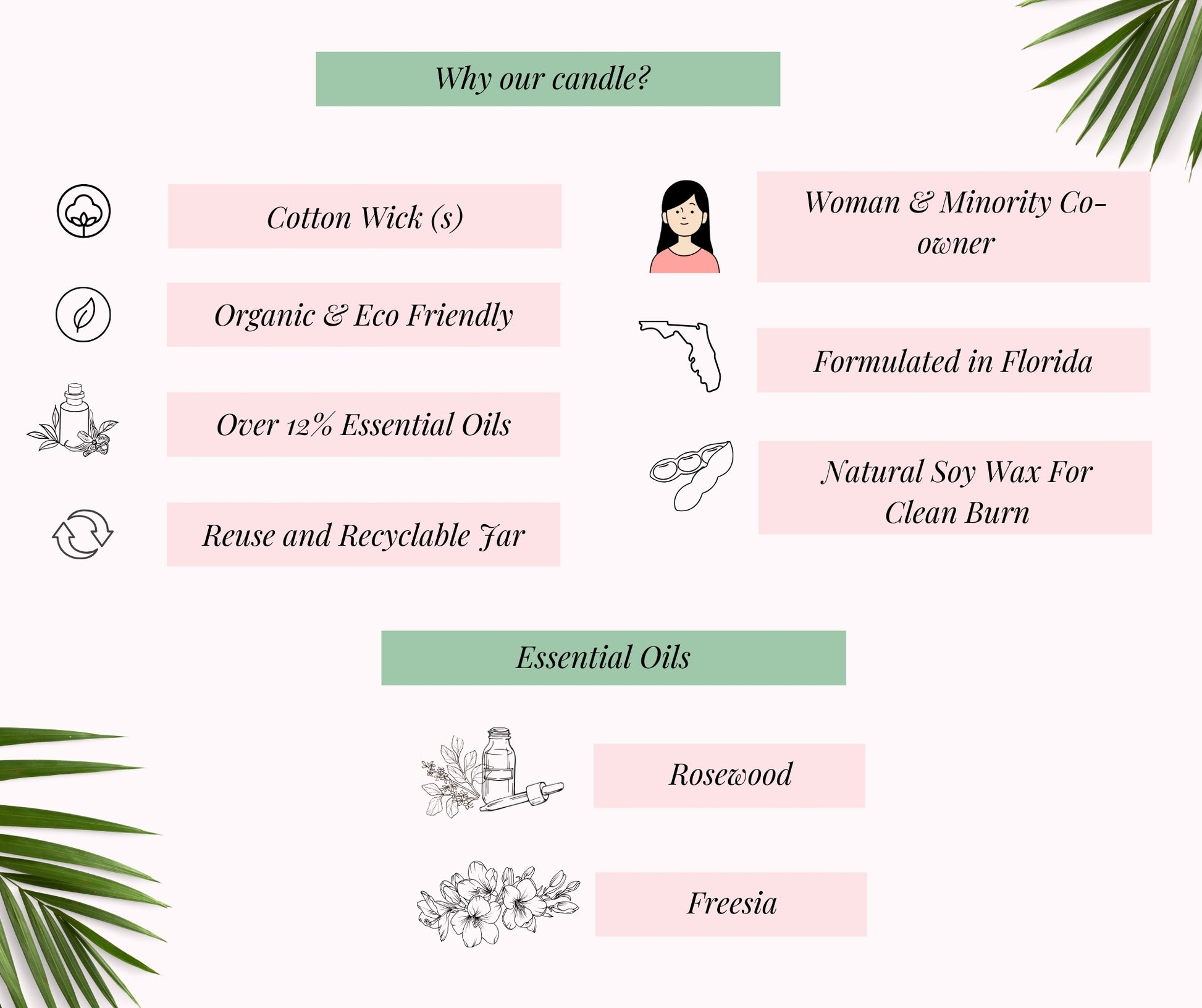 Our Luxury Vibrational Energy Candle Collection is formulated and designed in the heart of Florida. Each candle is carefully hand-poured by our expert artisans using only natural ingredients. We pride ourselves on using 100% soy wax, pure Aromatherpy-Grade essential oils, and natural cotton wicks.