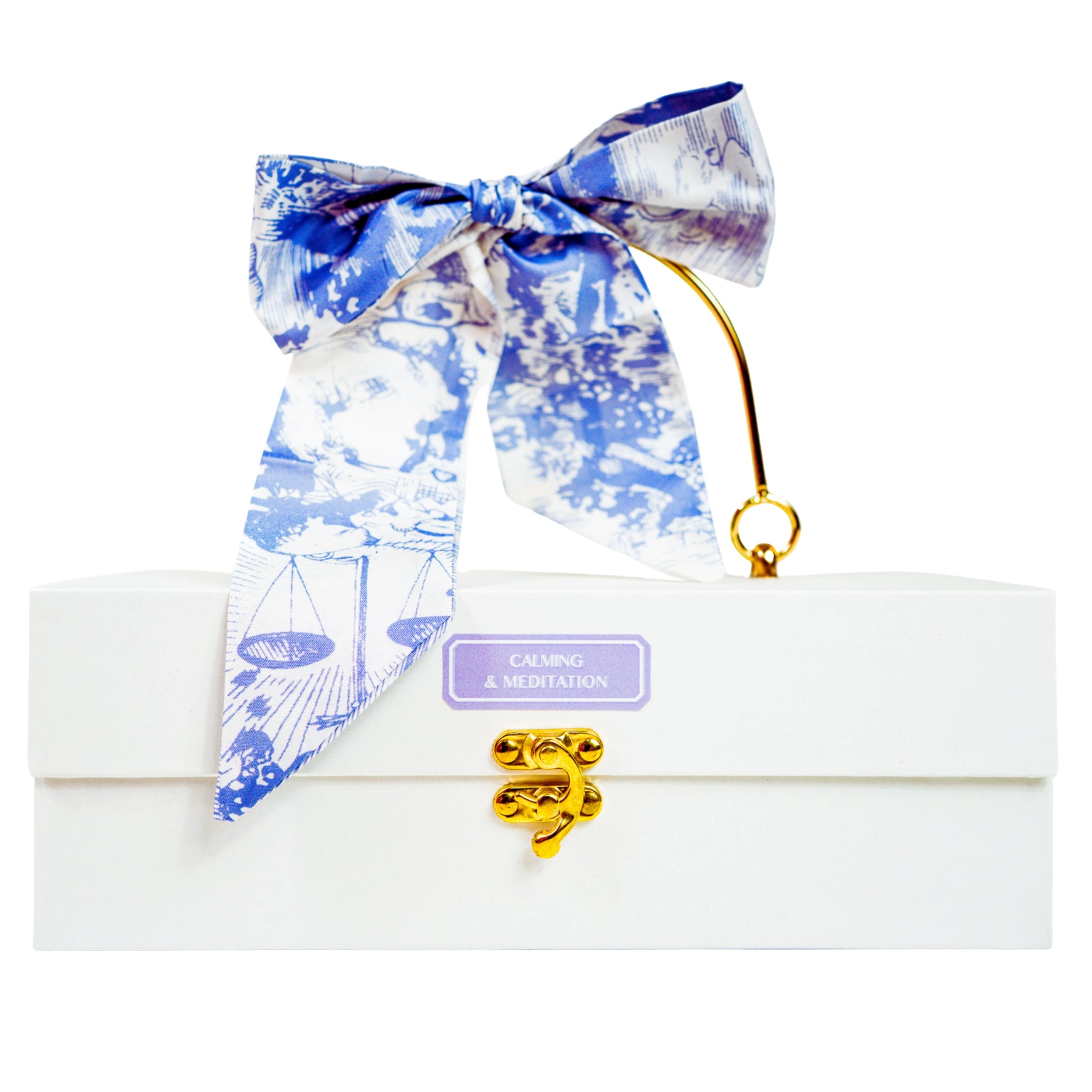 Transform your home into a serene sanctuary with the Podaras Home Calming & Meditation Gift Set. This 3-piece collection includes a 200 g soy wax candle, a 100 ml room spray, and a 140 ml reed diffuser, all elegantly presented in a white gift box with gold-coated metal hardware and satin bow. Perfect for creating mindful moments, meditation practice, or a calming home environment.