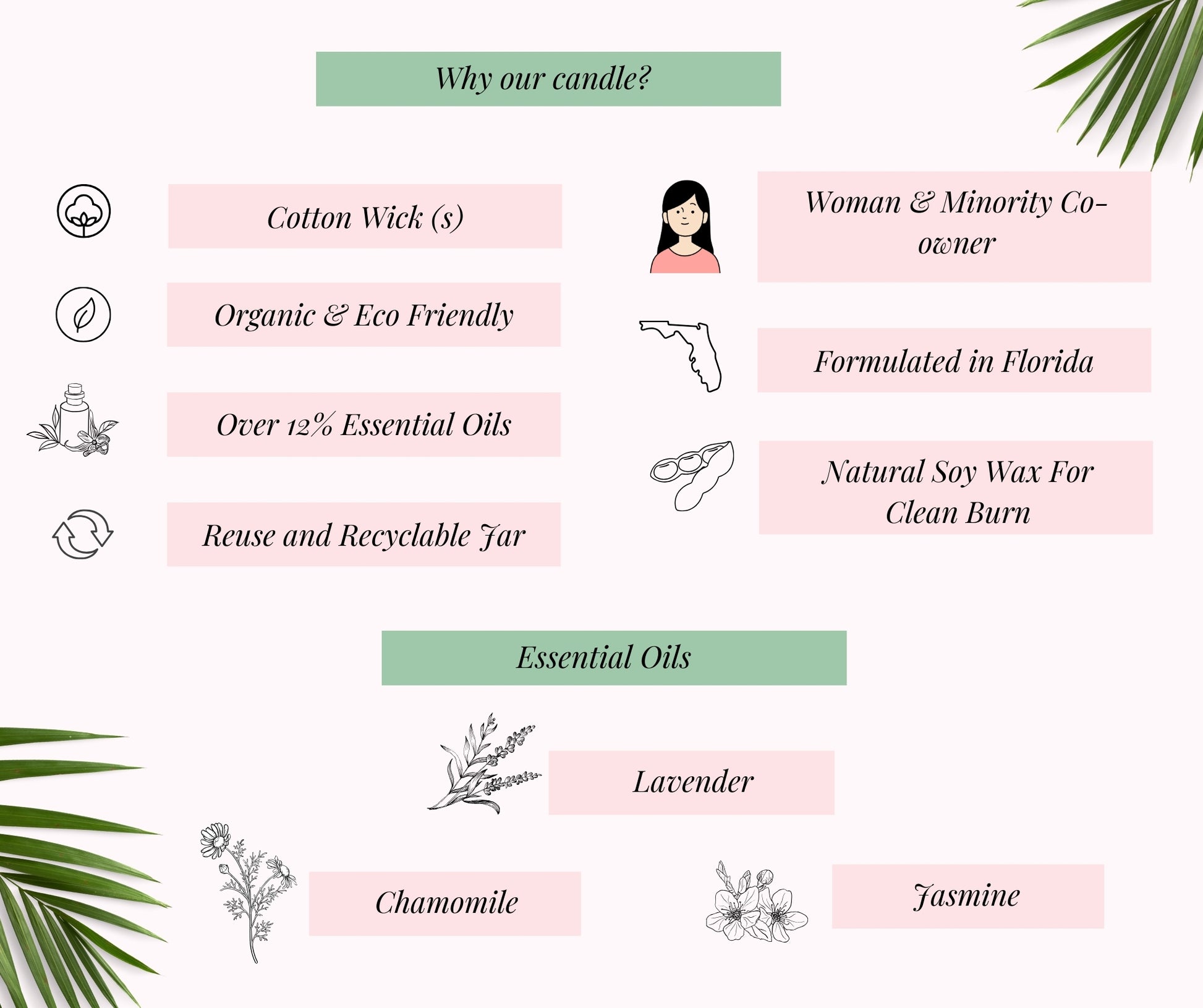 Our Luxury Vibrational Energy Candle Collection is formulated and designed in the heart of Florida. Each candle is carefully hand-poured by our expert artisans using only natural ingredients. We pride ourselves on using 100% soy wax, pure Aromatherpy-Grade essential oils, and natural cotton wicks.