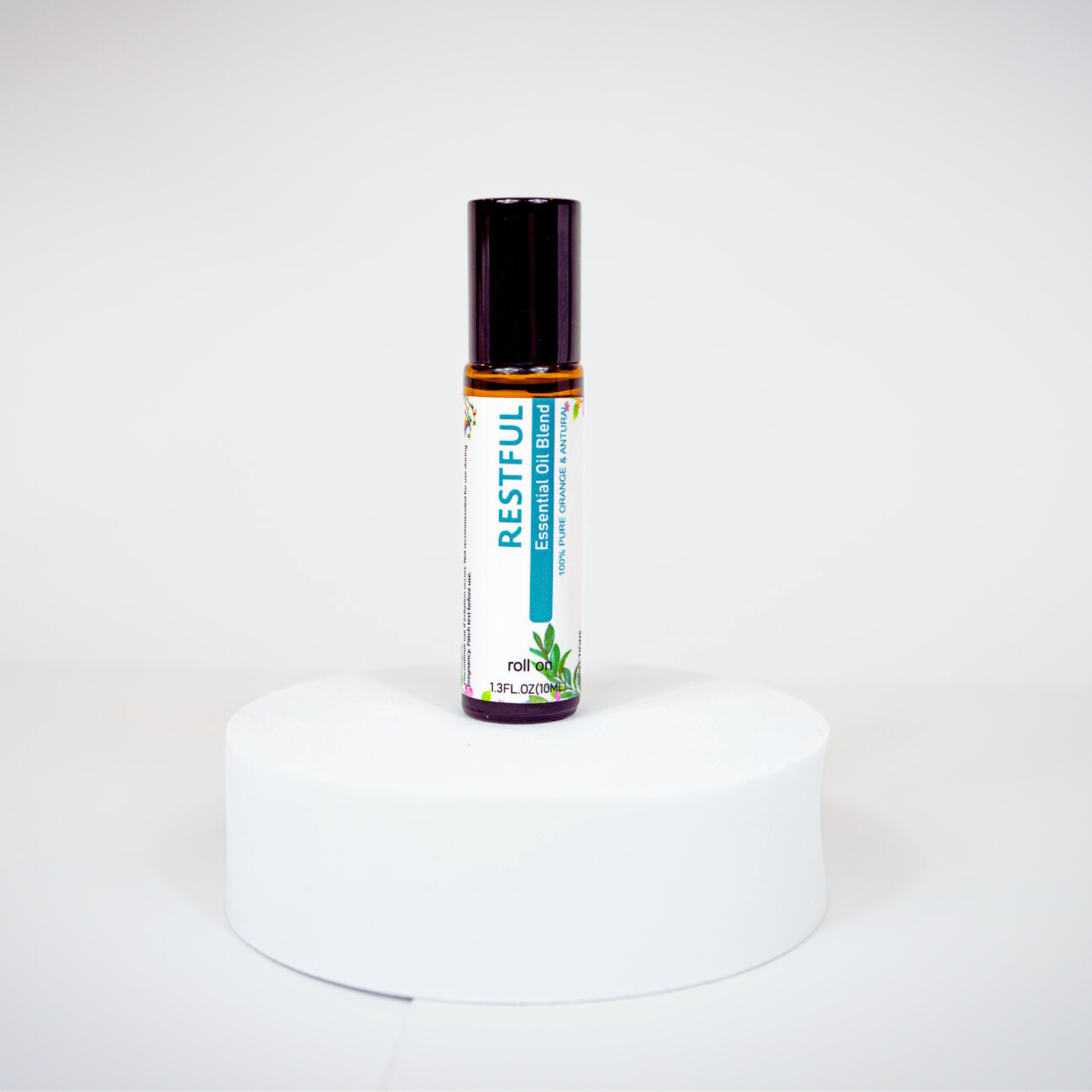 Portable roll-on essential oil blend for on-the-go relaxation. Apply to wrists, temples, or neck for a calm, balanced mood throughout the day. -